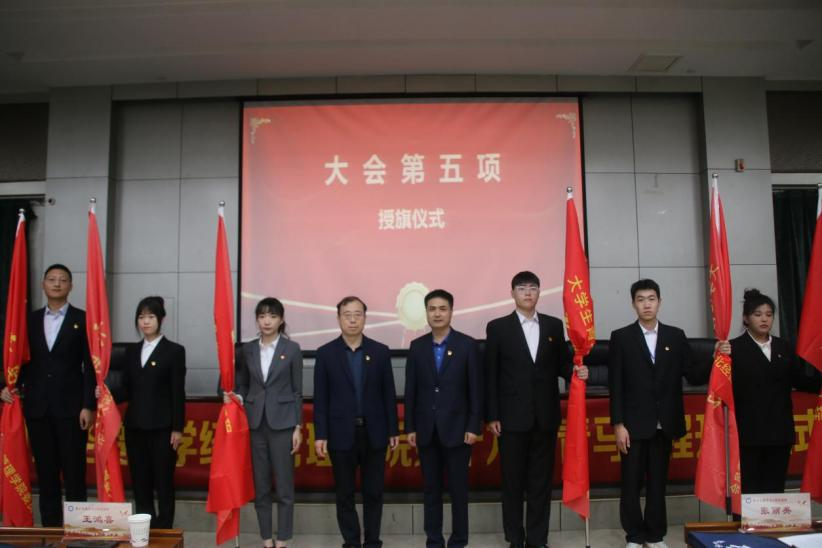 王鸿喜和廖俊峰为各班辅导员授旗。旗帜的传递是对青马学员们的一种激励和鞭策,更是责任与担当的延续。