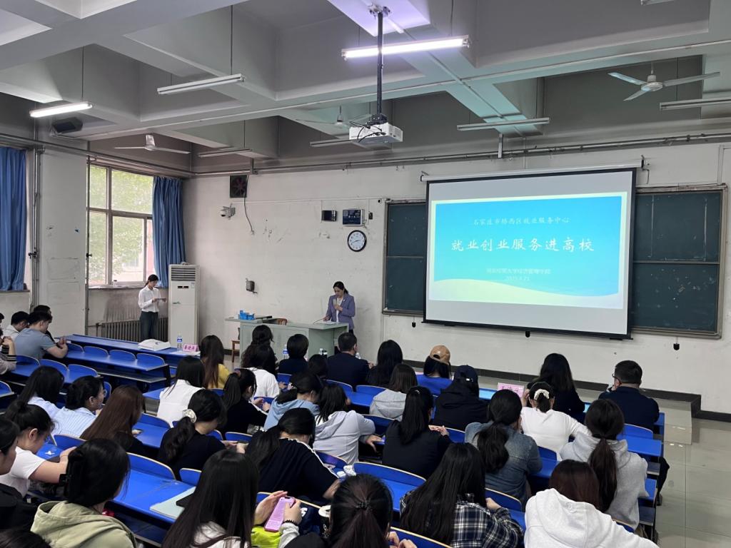 4月20日下午,“就业创业服务高校行”活动在星空三教205教室成功举办。此次活动由学院就业工作部和信息系联合主办,石家庄市桥西区就业服务中心承办。