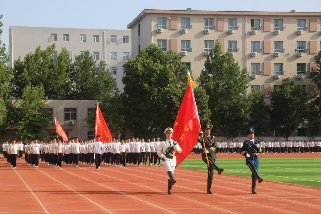 开学典礼结束后,军训结业式正式开始。六个连队精神抖擞、步伐铿锵,在《分列式进行曲》中依次通过主席台接受检阅,展现出两周刻苦训练的优异成果。国旗护卫队带训教官进行了队列展示,其过硬的军事素养和飒爽英姿赢得阵阵掌声。