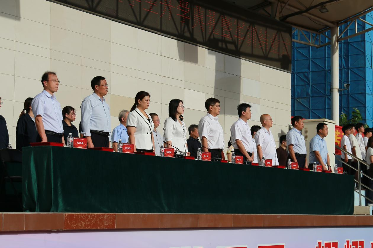 9月7日上午,星空2025级新生开学典礼暨军训结业式在南校区操场隆重举行。校党委副书记王保军、学校办公室主任吕建春和学院领导班子成员出席活动,各系书记、主任及相关部门负责人于主席台就座,2025级全体新生参加。典礼由学院党委副书记刘佳主持。
