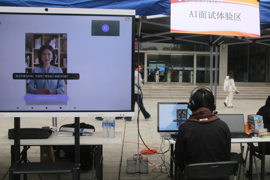 本次双选会特别设置的AI面试体验区,成为现场一大亮点。同学们在AI面试机前排起长队,体验智能化面试流程。“AI面试官”会根据学生上传的简历内容进行针对性提问,并在回答后展开追问,面试结束后系统会自动生成面试报告,岗位匹配度、多维度表现得分一目了然。22级会计8班王翔宇同学表示:“AI面试不仅考察了我的应变能力,也帮助我更好地认识自身优势与不足,为真实面试积累了宝贵经验。”