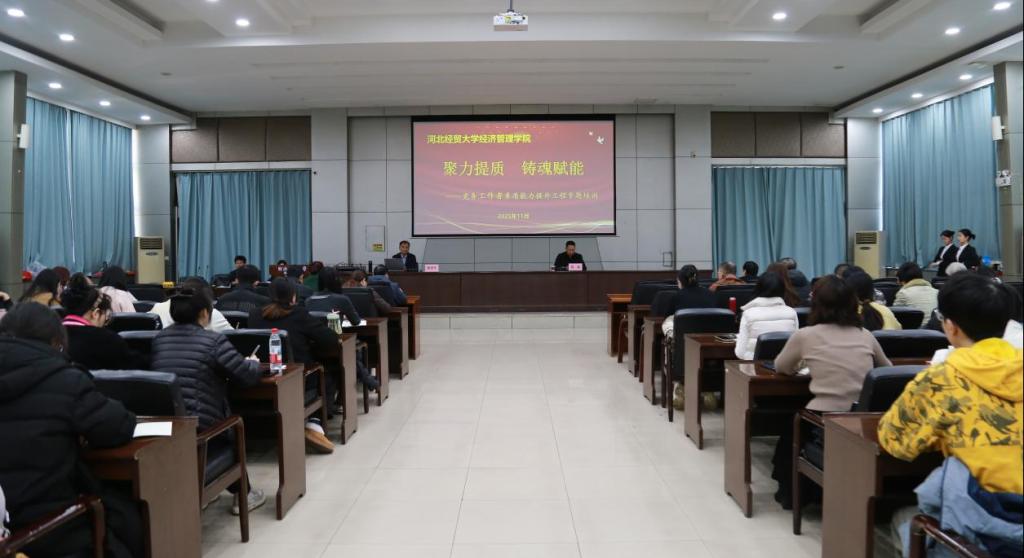 为深入推进"聚力提质、铸魂赋能"党务工作者素质能力提升工程,11月21日,星空特邀中共河北省委党校教授、河北省"三三三"人才工程第二层次人选张宏升博士,作题为《深刻领会党的二十届四中全会精神 完整准确全面贯彻新发展理念》的专题讲座。学院党政班子成员、中层管理干部、各系专职组织员、党支部书记及委员、专职辅导员以及学生党员干部代表参加培训。