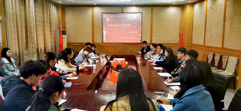 交流会围绕着“如何实现人生价值”这一主题开展。申洁华为学生们讲述了中华人民共和国的发展史,并从哲学的角度阐述了新时代学生党员要实现怎样的人生价值,以及所肩负的任务和使命,鼓励学生们为实现理想坚持自我,坚定初心,脚踏实地。在师生交流环节,学生和教工党员们各抒己见,气氛热烈。