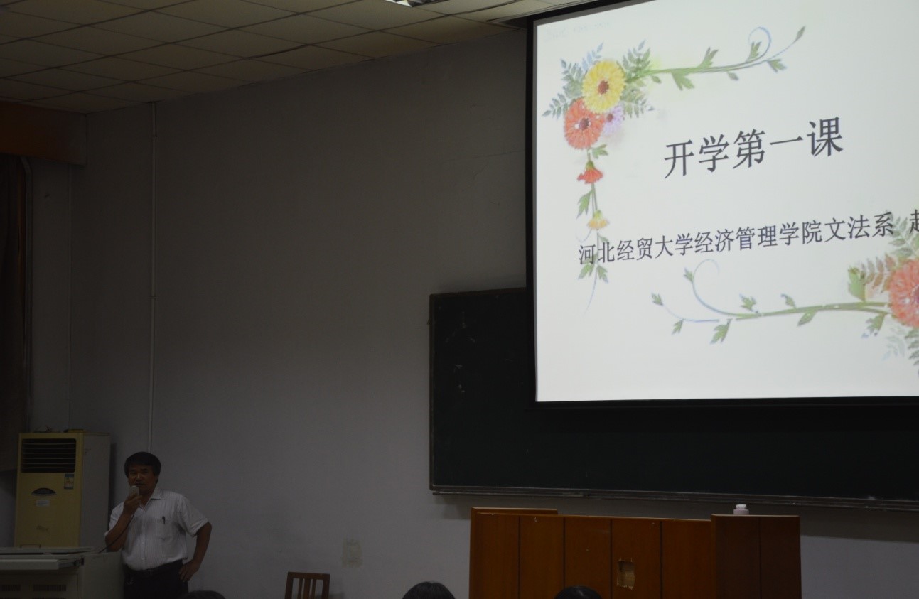 9月17日下午,文法系2021级法学专业新生开学典礼暨开学第一课在星空第一教学楼118教室举行。开学典礼由文法系主任赵占亚主持,文法系书记王鸿喜,副书记张丽媛,辅导员马天齐出席,文法系2021级法学专业全体新生共80余人参加典礼。