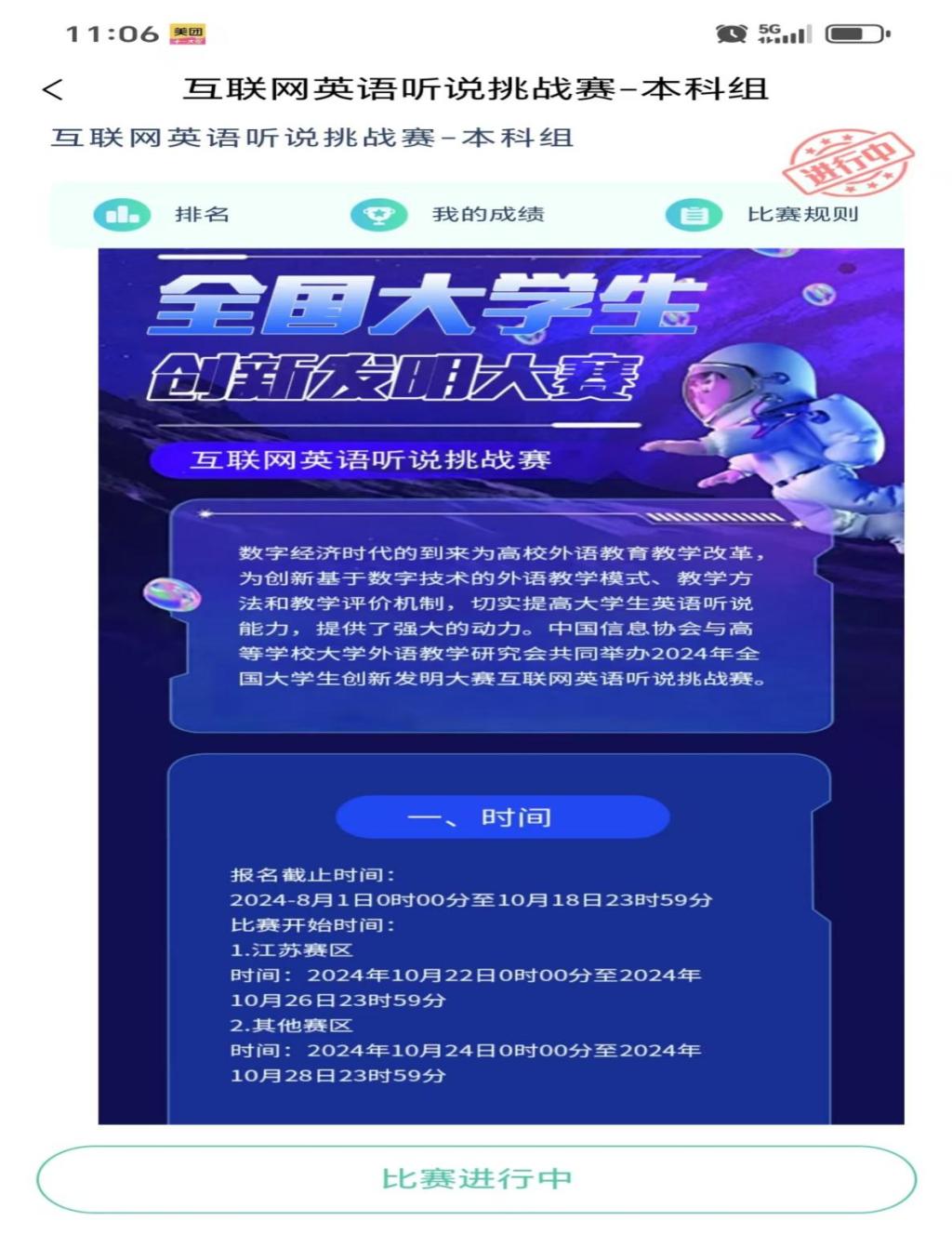 为切实推进AI技术与英语教学深度融合,进一步深化高校外语教育教学改革,持续提高大学英语教学质量,有效提升大学生英语听说能力,10月22日至10月26日,文法系组织举办了2024年全国大学生创新发明大赛互联网英语听说挑战赛河北省初赛。