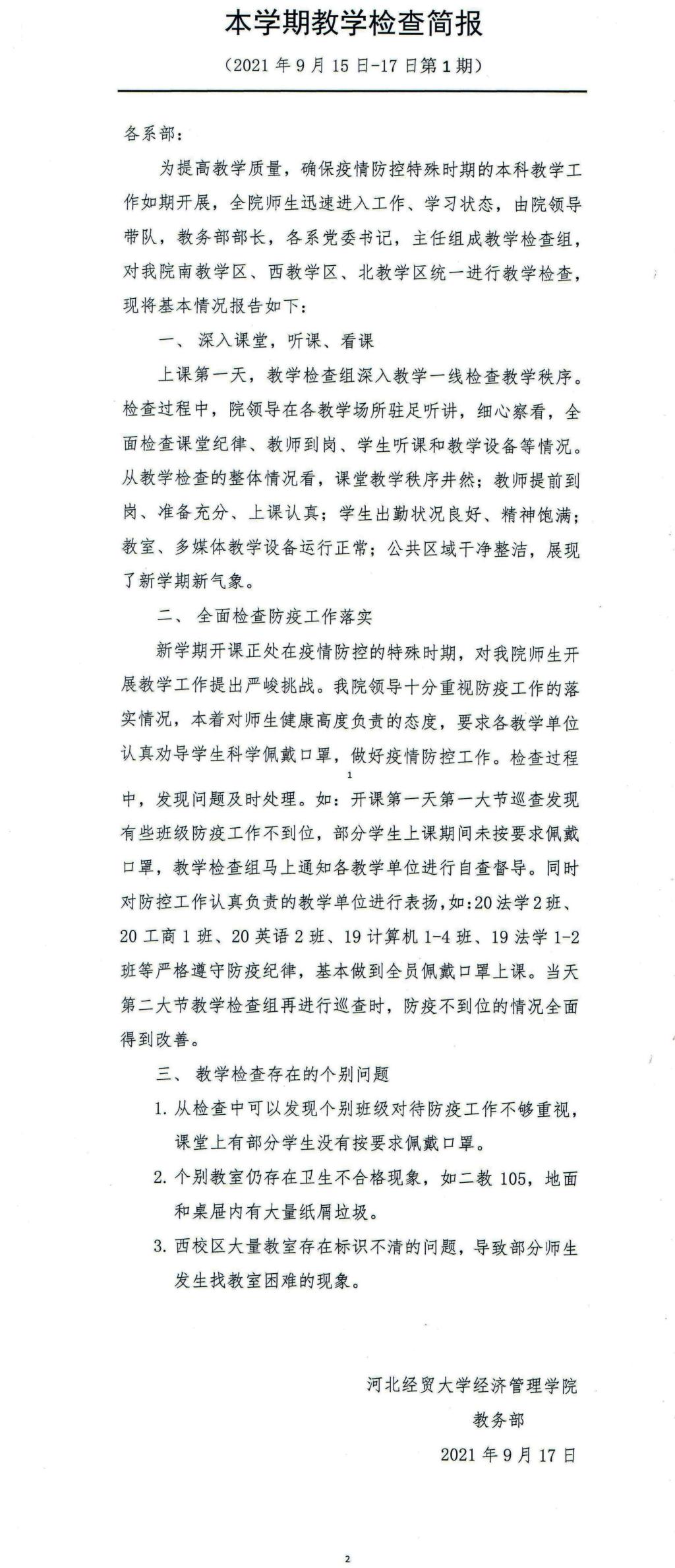 本学期教学检查简报