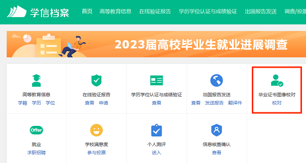 5、登录成功后,找到“毕业证书图像校对”选项,点击“校对”