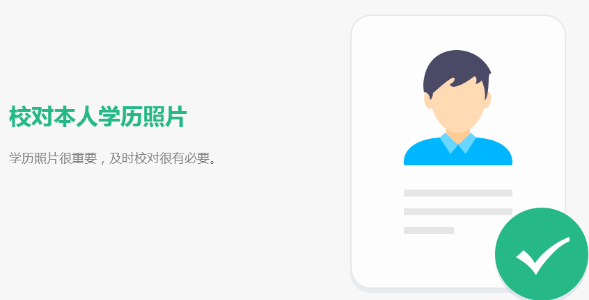 学生应认真核对本人的学籍信息(姓名、性别、出生日期、身份证号、专业、班级、学号等信息)及学历图像采集信息(学历照片)。