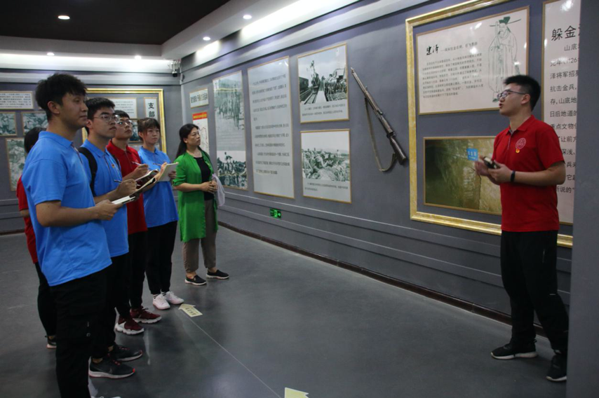 在抗日地道展览馆,小分队队长张仕昆化身讲解员,声情并茂的为大家讲述那段军民齐抗战的峥嵘岁月。面对那些振奋人心的图片,珍贵稀缺的文献、包含热血的故事,队员们或眼含泪花,或目光坚定,或心潮澎湃,或斗志昂扬,在这堂红色基地参访课中,青年的抱负与革命先辈的精神紧紧相融。随后,队员们发起一场热烈的革命诗词诵读课,“把酒酹滔滔,心潮逐浪高”,“唤起工农千百万,同心干,不周山下红旗乱”,“今日长缨在手,何时缚住苍龙”,“太平世界,环球同此凉热”......一首首饱含豪情壮志的革命诗词在地道遗址的上空回荡,这是青年一代向先辈们深情的致敬!
