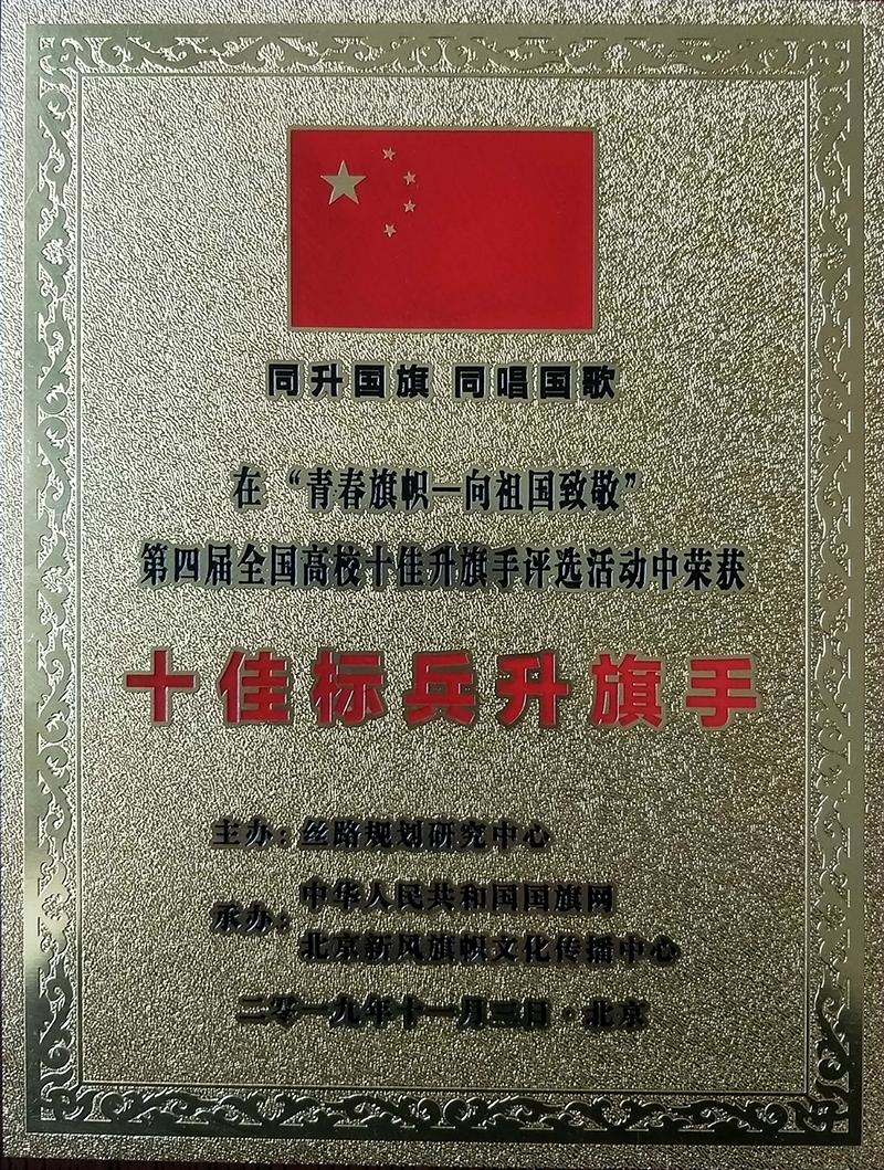 在交流展示活动中,星空国护队与来自北京航空航天大学、北京科技大学、澳门大学等40所高校的参赛队伍同场竞技,最终荣获“团体一等奖”,队员冯璇经过层层严格考核,以总成绩第一名的佳绩,荣获“全国十佳升旗手”,并获得“赵班长升旗奖”。