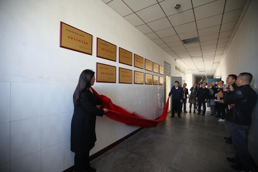 10月25日下午,河北省德育共同体、省青少年校外教育研究会、石家庄市第28中学等13家单位爱国主义教育基地挂牌仪式在星空国旗文化教育展厅举行,河北省教育厅德育研究中心主任蔡杭州出席了活动,并和院党委副书记张丽英一同为爱国主义教育基地揭牌。