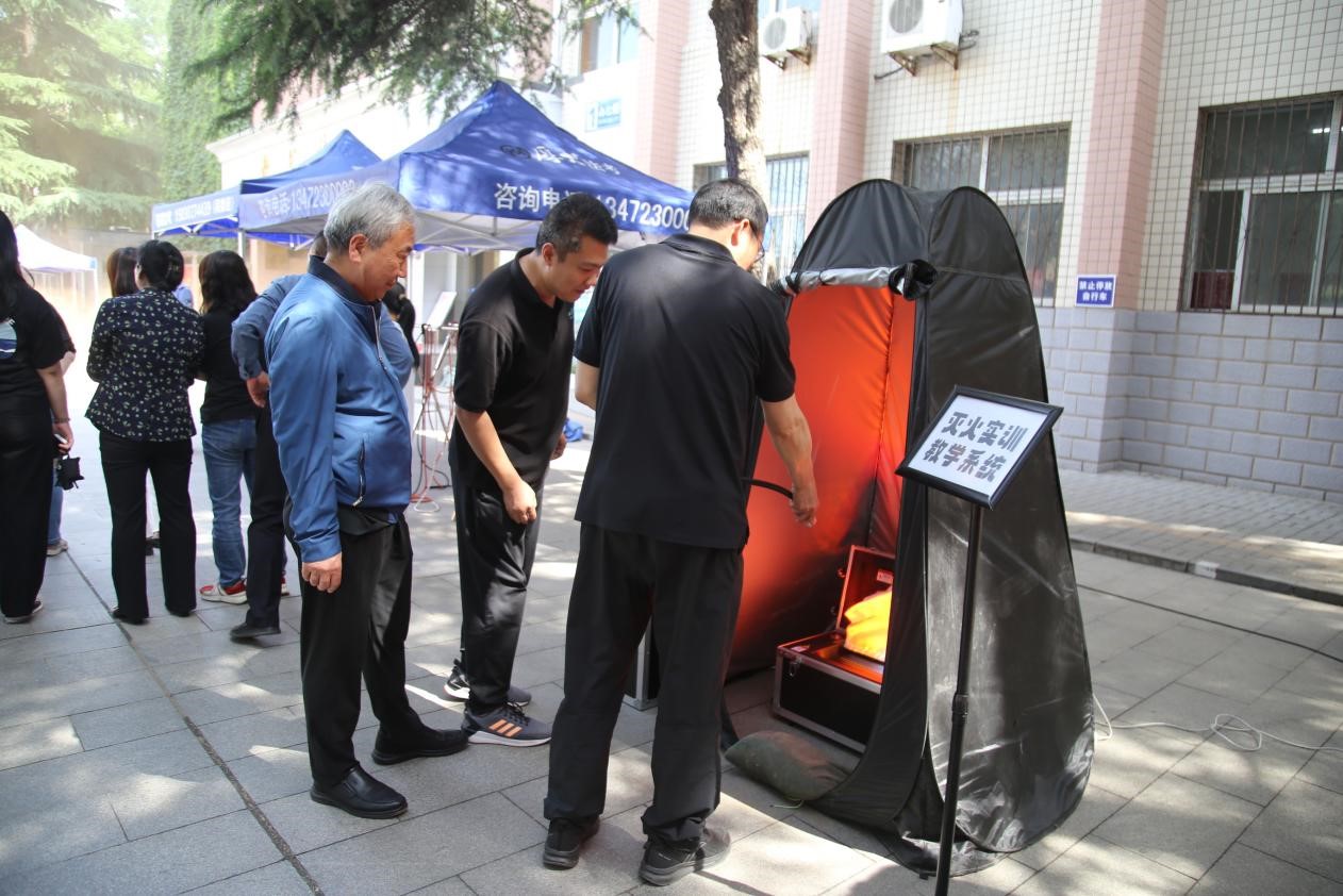 本次活动,安全工作部特邀北京麦课安全讲师杨巍担任主讲,普及正确的逃生注意事项和急救知识。现场实训包括烟雾逃生训练、模拟火灾逃生帐篷、灭火实训教学、醉酒行走体验、结绳训练、海姆立克急救训练共6个项目。和以往不同的是,本次采取仿真体验方式,模拟火灾发生现场设施,让教职工“身临其境”学习消防知识。