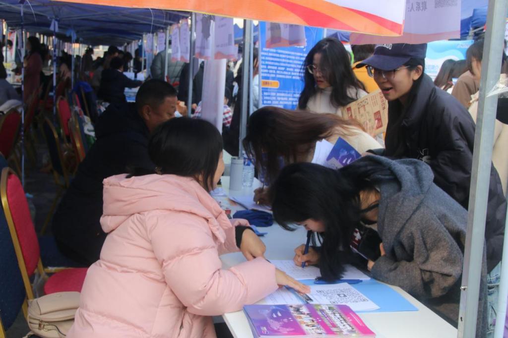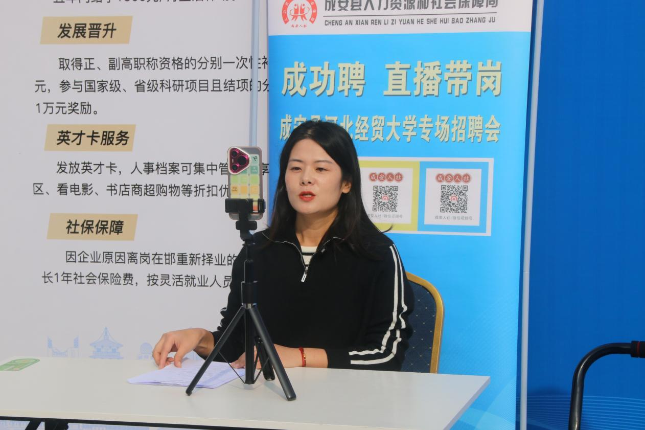 到场的各家企业单位也做好了充足准备,将自身的企业文化、发展情况、岗位要求以及薪资待遇等内容浓缩成招聘简章向现场的毕业生分发,并对前来咨询的毕业生答疑解惑。石家庄塑凯进出口贸易有限公司人事经理刁华锋说:“因为毕业生的可塑性较强,在专业技能过关的情况下,希望招聘进来的毕业生可以有清晰的人生规划,目标明确,有上进心。”现场的大多数企业单位期望同学们提前做好职业规划,制定明确的发展目标,放下身段,积极参与到就业工作中。此次双选会吸引邯郸市邯山区人才交流开发中心和成安县人力资源和社会保障局主动参与,他们凭借“十万学子进邯郸”人才政策优势,携当地20余家单位来到现场开设邯郸专区,并进行直播带岗活动,吸引星空学生到邯郸就业。